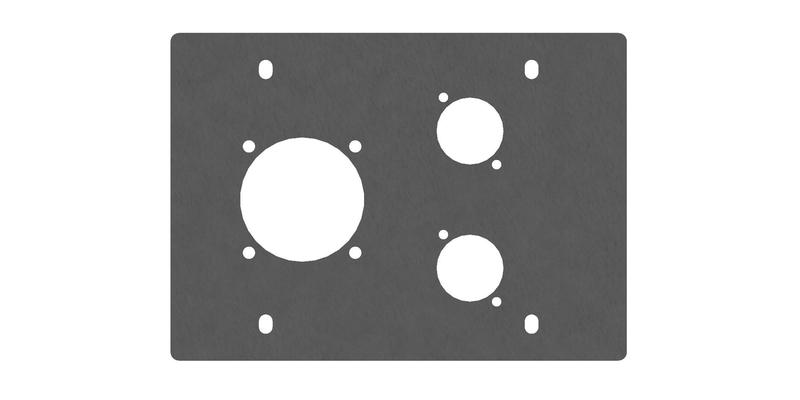 Установочная пластина для лючка КРC-L2. 1 отверстие под розетку Schuko и 2 отверстия под разъем XLR D-типа.  Габариты 165х116 мм."Чистые" габариты для установки разъемов: 165х72 мм.