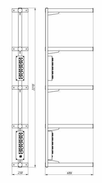 • Высота L=2270 мм, пять консолей диам. 50 мм, длина 650 мм., шаг между консолями 550 мм.