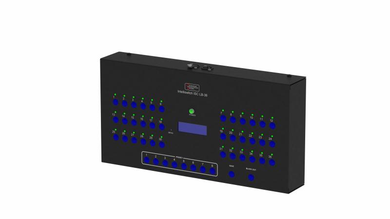 Пульт управления DMX-свитчерами 36-канальный настенный ISС-36W предназначен для управления световым оборудованием в театрах и концертных залах, предоставляет возможность дистанционного включения и отключения нагрузки (прожекторов, приборов световых эффектов, генераторов эффектов и др).